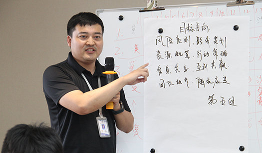 熱鬧的暖場(chǎng)游戲過后,李老師詳細(xì)介紹了沙漠掘金游戲規(guī)則。指出如何設(shè)置團(tuán)隊(duì)目標(biāo),配置小組的資源,掌握外部天氣情況,對(duì)在沙漠里能夠前行多久至關(guān)重要。強(qiáng)調(diào)在游戲過程中只有團(tuán)結(jié)協(xié)作,互相信任,有效溝通將最終會(huì)實(shí)現(xiàn)合作共贏。