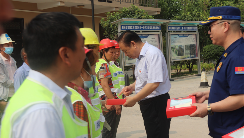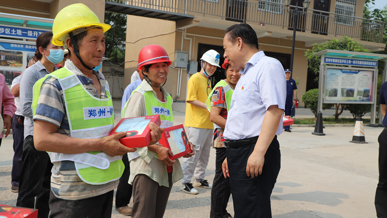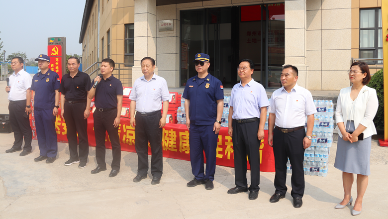 進(jìn)入夏季以來,持續(xù)出現(xiàn)的高溫天氣,給奮戰(zhàn)在建設(shè)一線的施工人員帶來嚴(yán)峻考驗(yàn),廣大職工不畏酷暑,堅(jiān)守崗位,辛勤付出。為做好廣大職工的防暑降溫工作,切實(shí)保護(hù)職工身體健康,6月11日,鄭州市總工會、鄭州市消防救援支隊(duì)到鄭州地產(chǎn)集團(tuán)西流湖公司中原新區(qū)土地一級開發(fā)項(xiàng)目指揮部開展主題為“送清涼、送安全、送健康、促和諧”的夏季送清涼活動。鄭州市一級巡視員、市總工會黨組書記、主席趙新中,市消防救援支隊(duì)副支隊(duì)長、滅火救援指揮部部長李隆,市總工會副主席宋少丹,鄭州地產(chǎn)集團(tuán)有限公司監(jiān)事會主席、工會主席李靜波及西流湖公司黨支部書記、董事長、總經(jīng)理吉獻(xiàn)亮等領(lǐng)導(dǎo)出席活動?;顒佑晌髁骱靖笨偨?jīng)理昌磊主持。