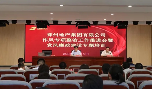 為進(jìn)一步轉(zhuǎn)變工作作風(fēng),加強(qiáng)黨風(fēng)廉政建設(shè),不斷將全面從嚴(yán)治黨引向深入,6月4日上午,鄭州地產(chǎn)集團(tuán)組織開展作風(fēng)專項(xiàng)整治工作推進(jìn)會暨黨風(fēng)廉政建設(shè)專題培訓(xùn),深入學(xué)習(xí)貫徹習(xí)近平總書記關(guān)于全面從嚴(yán)治黨的重要論述,部署推進(jìn)落實(shí)集團(tuán)“作風(fēng)建設(shè)專項(xiàng)整治活動”各項(xiàng)工作,嚴(yán)整集團(tuán)總部工作作風(fēng),涵養(yǎng)務(wù)實(shí)擔(dān)當(dāng)生態(tài),為集團(tuán)高質(zhì)量發(fā)展保駕護(hù)航。會議由集團(tuán)黨委委員、監(jiān)事會主席李靜波主持,集團(tuán)總部全體人員及各子公司主要負(fù)責(zé)人共計(jì)120余人參加。