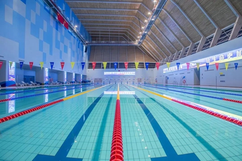 鄭州奧體中心游泳館位于鄭州奧體項(xiàng)目東南端(中原區(qū)長(zhǎng)椿南路與博體路交匯處),是鄭州市甲級(jí)游泳場(chǎng)館,鄭州奧體中心游泳館建筑面積1.9萬(wàn)平方米,館內(nèi)設(shè)有3100個(gè)固定座席,擁有標(biāo)準(zhǔn)10道50米競(jìng)賽池,10道50米訓(xùn)練池,10道25米教學(xué)池,既有可以承辦國(guó)際賽事的專業(yè)級(jí)比賽場(chǎng)館,又有滿足全民運(yùn)動(dòng)的標(biāo)準(zhǔn)泳池,更配備了完善的更衣休閑區(qū)及全館智慧科技系統(tǒng),市民朋友可以盡享宏偉水上場(chǎng)館的視覺(jué)沖擊與暢快運(yùn)動(dòng)的極致體驗(yàn)!