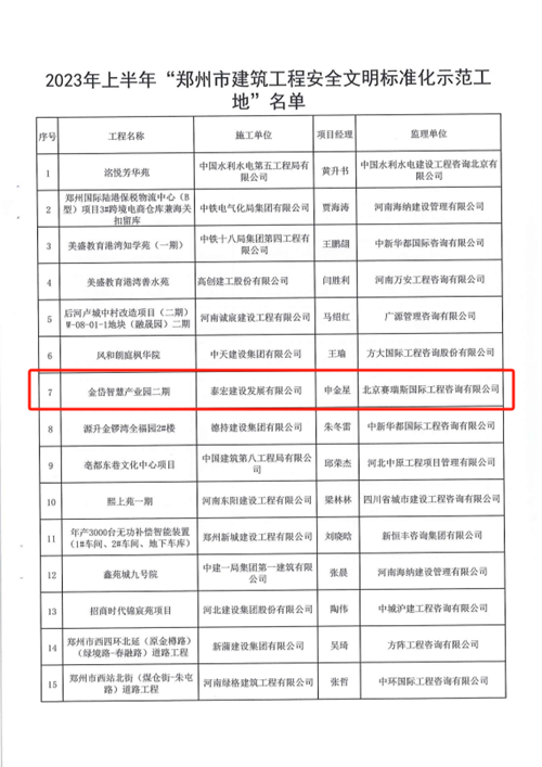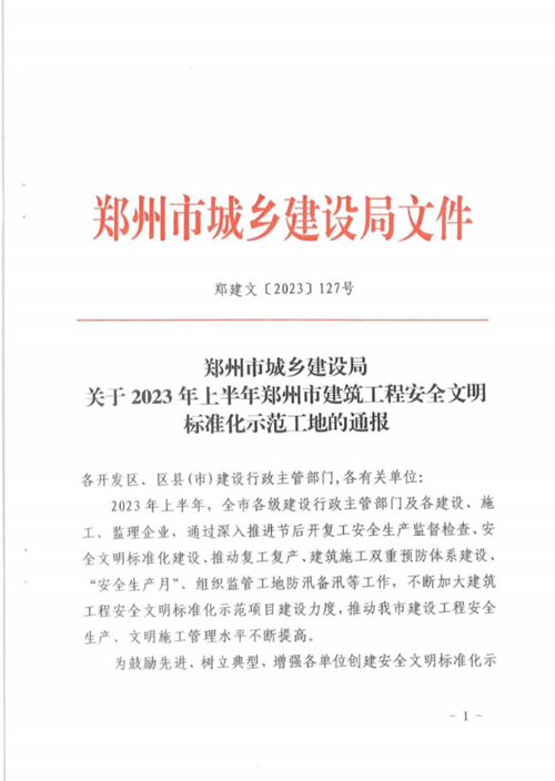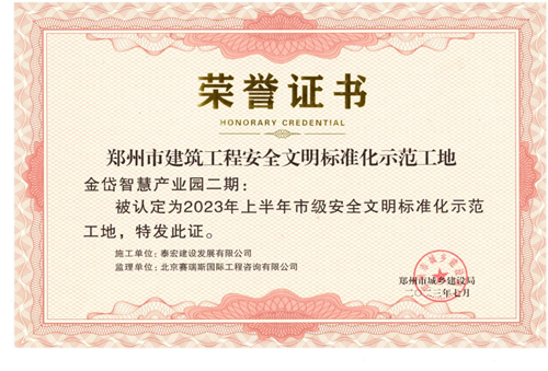 近日,經(jīng)鄭州市城鄉(xiāng)建設(shè)局評選,河南鄭地科創(chuàng)產(chǎn)業(yè)發(fā)展有限公司投資建設(shè)的金岱智慧產(chǎn)業(yè)園二期項目榮獲“2023年上半年鄭州市建筑工程安全文明標(biāo)準(zhǔn)化示范工地”榮譽稱號。