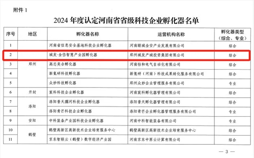 近日,河南省科學技術(shù)廳發(fā)布通知,公布2024年度河南省省級科技企業(yè)孵化器、河南省眾創(chuàng)空間的通知,經(jīng)推薦、專家評審、核查、廳長辦公會研究、公示等程序,同意城發(fā)·金岱智慧產(chǎn)業(yè)園等21家單位認定為河南省省級科技企業(yè)孵化器,同意河南應(yīng)用技術(shù)職業(yè)學院眾創(chuàng)空間等33家單位備案為河南省眾創(chuàng)空間。