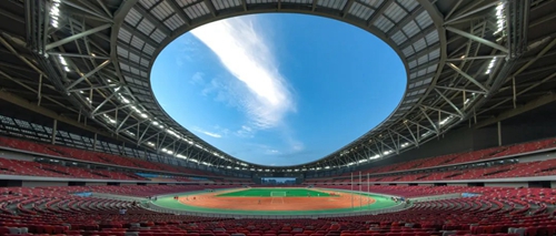 鄭州奧體中心體育場(chǎng)采用了“三角形巨型桁架+立面桁架+網(wǎng)架+大開(kāi)口車輻式索承網(wǎng)格”的組合結(jié)構(gòu)體系設(shè)計(jì)。82米跨三角形巨型桁架,重量達(dá)1300噸,為同類之最;大開(kāi)口車輻式索承網(wǎng)格結(jié)構(gòu)為全球最大懸挑,設(shè)計(jì)最大懸挑54.1米,其中,環(huán)向密封拉索直徑為130毫米、單個(gè)索夾重達(dá)6.5噸,均為國(guó)內(nèi)之最。項(xiàng)目整體形成的《鄭州奧體中心綜合建造技術(shù)》,成果總體達(dá)到國(guó)際先進(jìn)水平。