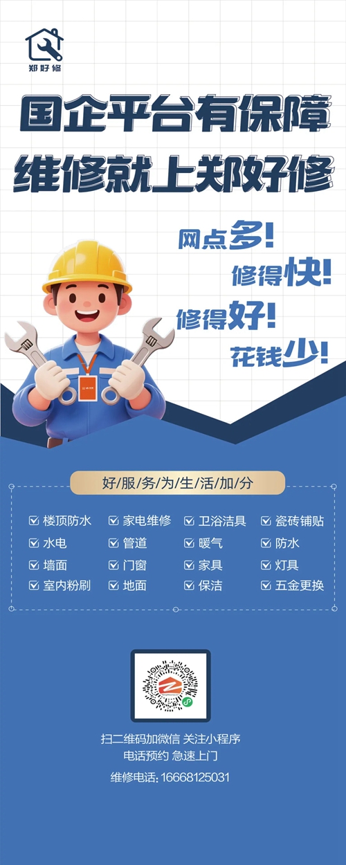 “鄭好修”平臺的市場化拓展路徑清晰明確。平臺將圍繞水電安裝維修、管道疏通、防水補(bǔ)漏、門窗安裝維修4大類11大項(xiàng)410小項(xiàng)開展業(yè)務(wù),未來將逐步拓展家用電器售后維修服務(wù)領(lǐng)域,形成“政府主導(dǎo),市場化運(yùn)作”的綜合維修服務(wù)模式。