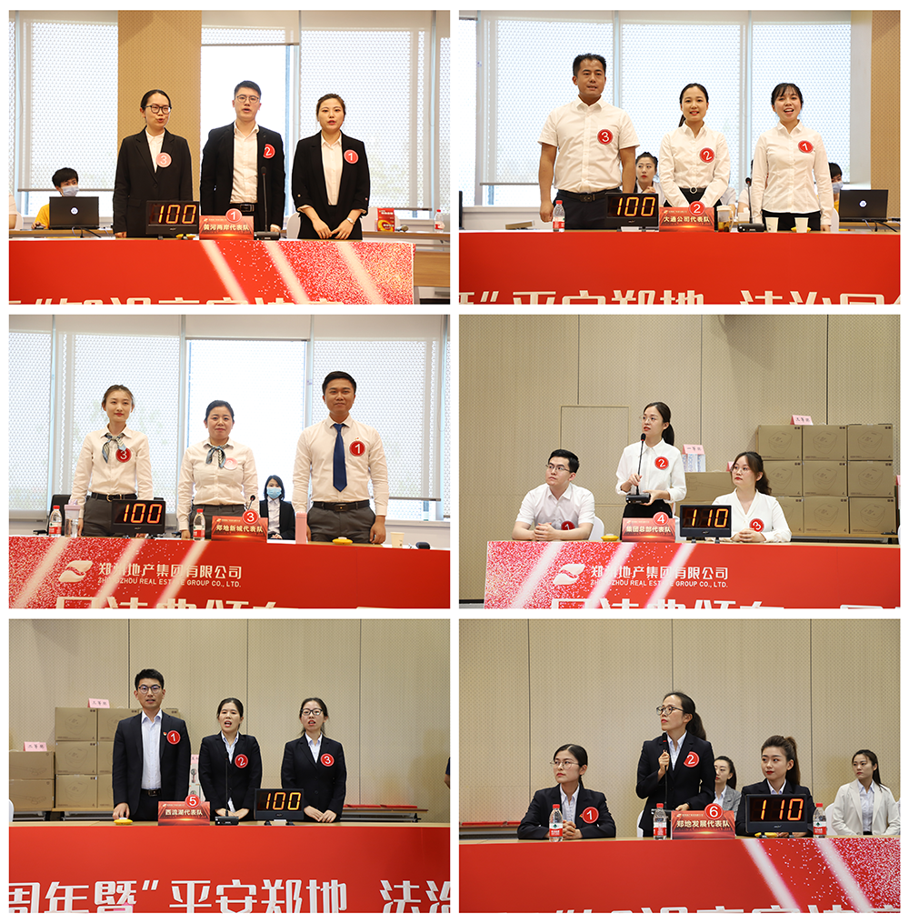 地產(chǎn)集團總部及10家子公司廣泛參與,本次競賽共有12支隊伍報名參賽。經(jīng)過緊張激烈的預(yù)賽比拼,最終有6支隊伍突出重圍,進入決賽。決賽賽程分為必答題、爭分奪秒題、搶答題、挑兵點將題、風(fēng)險題五個環(huán)節(jié),圍繞民法典、平安建設(shè)、精神文明建設(shè)等內(nèi)容開展競賽答題活動。答題環(huán)節(jié),各代表隊展現(xiàn)出了精湛的理論素養(yǎng)、扎實的法律功底、靈活的應(yīng)變能力和精誠合作的團隊精神,精彩的表現(xiàn)贏得現(xiàn)場觀眾的陣陣掌聲。經(jīng)過幾個環(huán)節(jié)激烈的角逐,最終地產(chǎn)集團西流湖公司代表隊摘得桂冠。