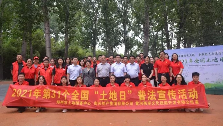 6月25日是全國第31個(gè)“土地日”,為積極踐行習(xí)近平總書記關(guān)于黃河流域生態(tài)保護(hù)和高質(zhì)量發(fā)展理念,增強(qiáng)全民保護(hù)耕地意識,營造節(jié)約集約用地、切實(shí)保護(hù)耕地的良好社會(huì)氛圍,當(dāng)天上午,地產(chǎn)集團(tuán)聯(lián)合鄭州市土地儲備中心在黃河文化公園舉辦了以“十分珍惜和合理利用土地,創(chuàng)新綠色和高質(zhì)量發(fā)展”為主題的志愿普法宣傳活動(dòng)。土地儲備中心黨委書記、主任陳思格,副主任趙海潮、楊春發(fā),集團(tuán)黨委委員張華,黃河兩岸公司黨支部書記、總經(jīng)理趙佳佳共計(jì)70余人參加了本次活動(dòng)。