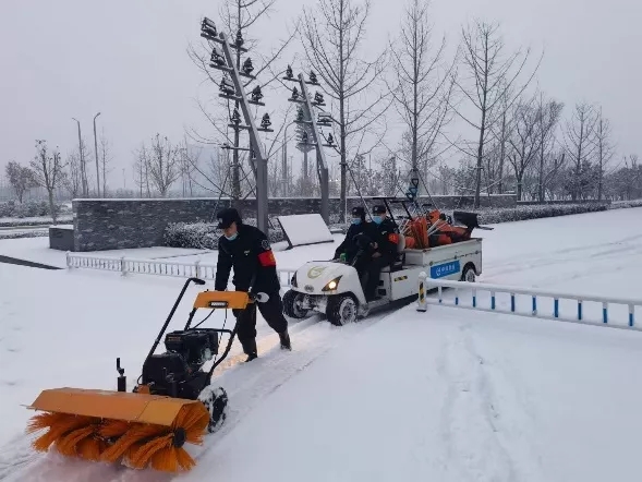 2022年1月19日,河南省氣象臺發(fā)布暴雪藍色預警,為應對2022年二次來襲的暴雪,鄭州奧林匹克體育中心立即啟動應急預案,實行責任區(qū)劃分和全員義務清理相結合的原則,所有人員“以雪為令,即下即清”,全面出動快速打響清雪除冰戰(zhàn)役,圓滿完成了本次鏟冰除雪工作任務。