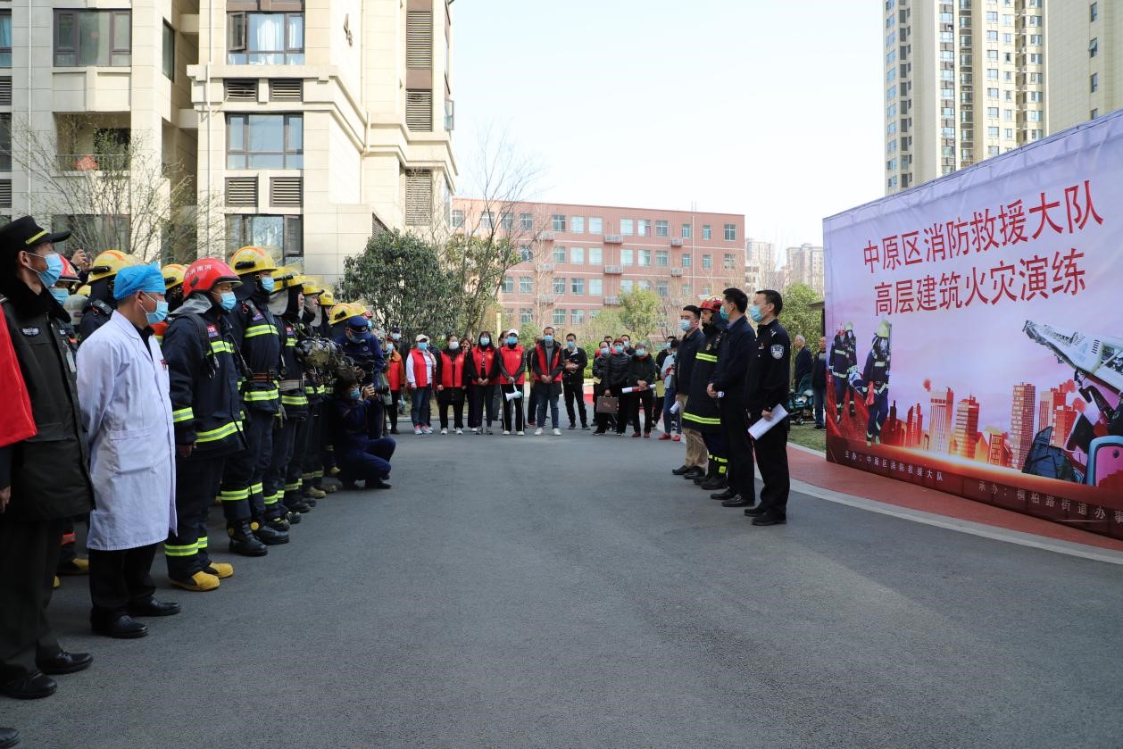 3月10日上午,為進(jìn)一步提高社區(qū)居民及物業(yè)高層建筑火災(zāi)應(yīng)急處置能力,強(qiáng)化小區(qū)居民消防安全意識(shí),積極推進(jìn)“平安社區(qū)”建設(shè),鄭州地產(chǎn)集團(tuán)西流湖公司參與聯(lián)合中原區(qū)消防救援大隊(duì)、桐柏路辦事處、鋁業(yè)社區(qū)及亞新物業(yè)等單位在鄭地璞園小區(qū)開(kāi)展高層建筑滅火救援實(shí)戰(zhàn)演練。