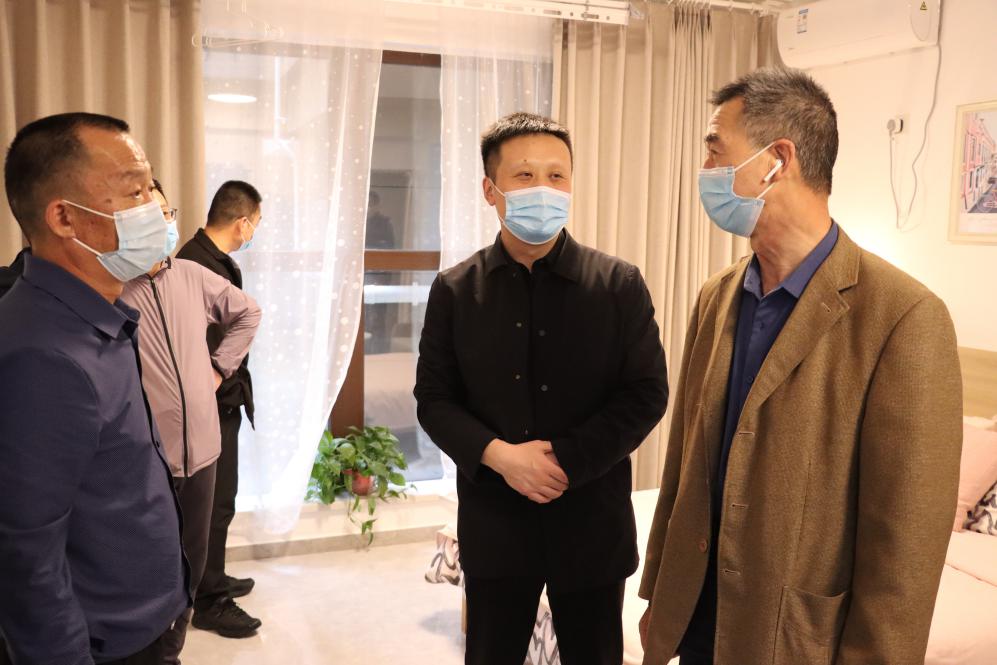 在項(xiàng)目現(xiàn)場(chǎng),楊慶忠一行聽取了鄭地租賃公司負(fù)責(zé)人對(duì)項(xiàng)目定位設(shè)計(jì)、運(yùn)營模式、服務(wù)體系等情況的整體介紹,仔細(xì)參觀了各戶型樣板間,查看內(nèi)部結(jié)構(gòu)和功能設(shè)計(jì),詳細(xì)了解了房屋精裝交付標(biāo)準(zhǔn)、共享空間搭建、安全管理模式、成本管控措施等情況,并現(xiàn)場(chǎng)互動(dòng)體驗(yàn)了入戶智能門鎖及智能家居系統(tǒng)。